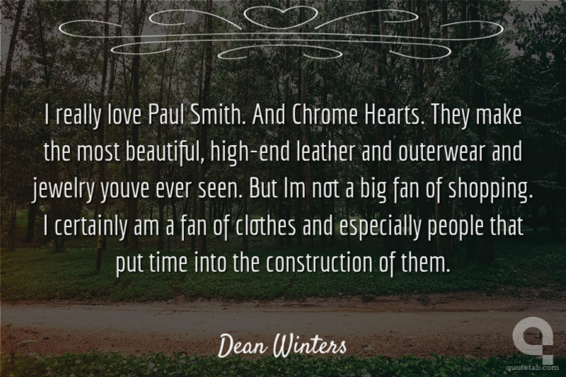 I really love Paul Smith. And Chrome Hearts. They make the most beautiful, high-end leather and outerwear and jewelry youve ever seen. But Im not a big fan of shopping. I certainly am a fan of clothes and especially people that put time into the construction of them.