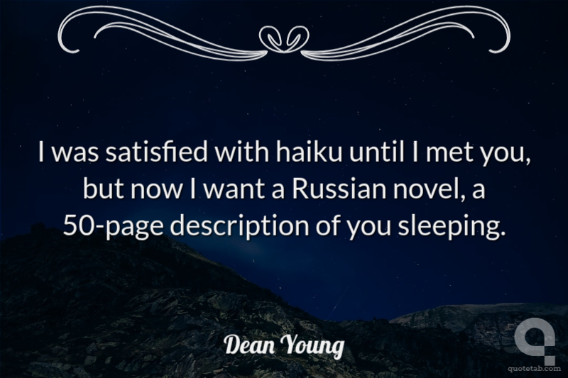 I was satisfied with haiku until I met you, but now I want a Russian novel, a 50-page description of you sleeping.