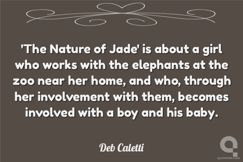 'The Nature of Jade' is about a girl who works with the elephants at the zoo near her home, and who, through her involvement with them, becomes involved with a boy and his baby.