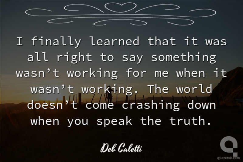 I finally learned that it was all right to say something wasn’t working for me when it wasn’t working. The world doesn’t come crashing down when you speak the truth.