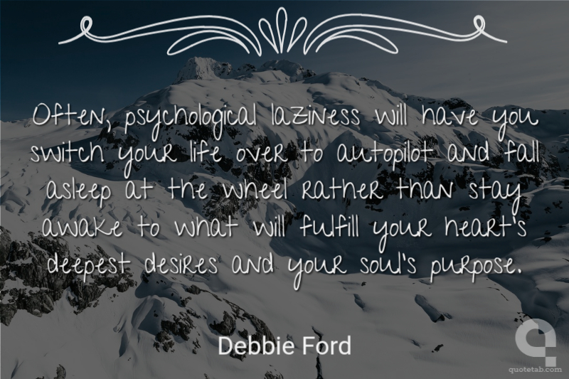 Often, psychological laziness will have you switch your life over to autopilot and fall asleep at the wheel rather than stay awake to what will fulfill your heart's deepest desires and your soul's purpose.