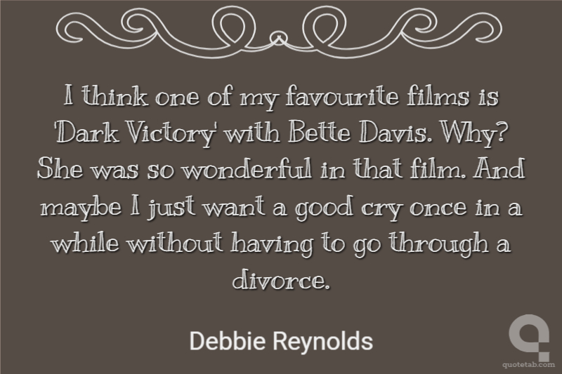 I think one of my favourite films is 'Dark Victory' with Bette Davis. Why? She was so wonderful in that film. And maybe I just want a good cry once in a while without having to go through a divorce.