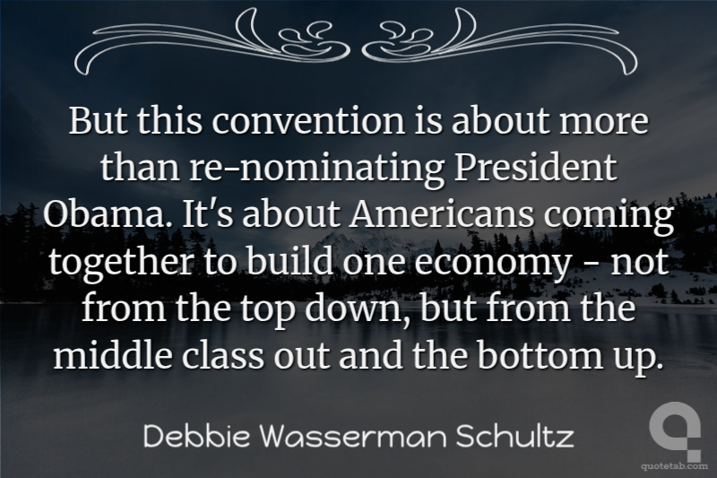 But this convention is about more than re-nominating President Obama. It's about Americans coming together to build one economy - not from the top down, but from the middle class out and the bottom up.