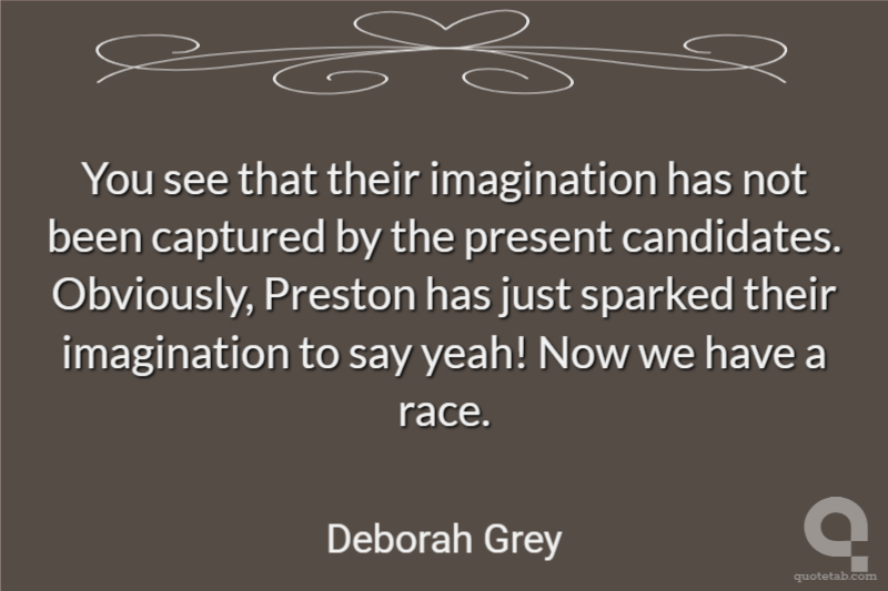 You see that their imagination has not been captured by the present candidates. Obviously, Preston has just sparked their imagination to say yeah! Now we have a race.