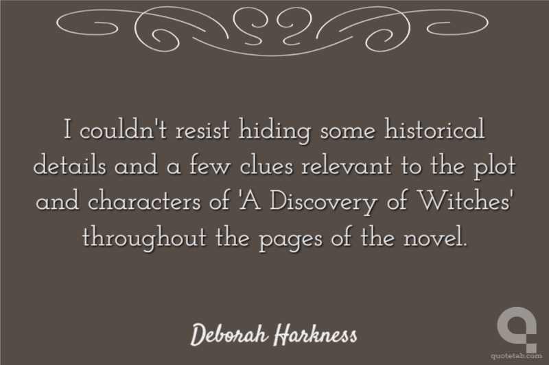 I couldn't resist hiding some historical details and a few clues relevant to the plot and characters of 'A Discovery of Witches' throughout the pages of the novel.