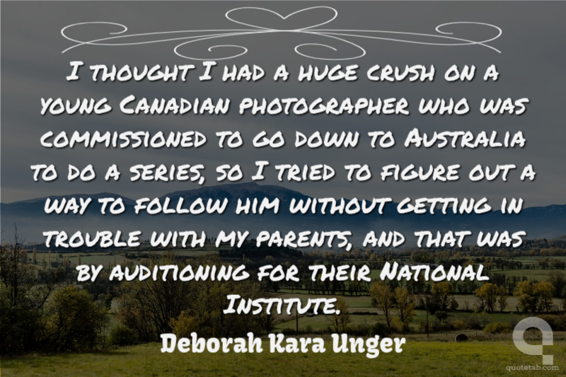 I thought I had a huge crush on a young Canadian photographer who was commissioned to go down to Australia to do a series, so I tried to figure out a way to follow him without getting in trouble with my parents, and that was by auditioning for their National Institute.