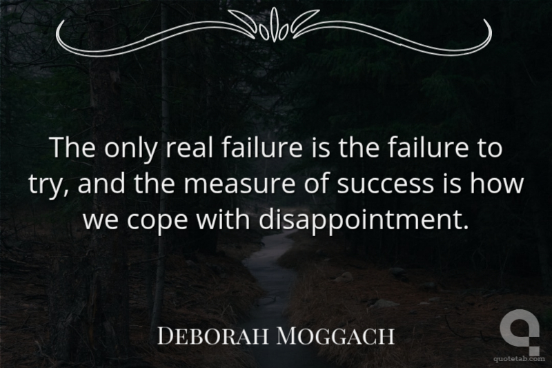 The only real failure is the failure to try, and the measure of success is how we cope with disappointment.