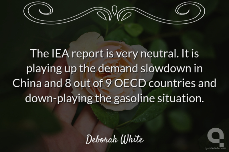 The IEA report is very neutral. It is playing up the demand slowdown in China and 8 out of 9 OECD countries and down-playing the gasoline situation.