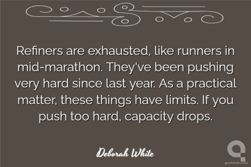 Refiners are exhausted, like runners in mid-marathon. They've been pushing very hard since last year. As a practical matter, these things have limits. If you push too hard, capacity drops.