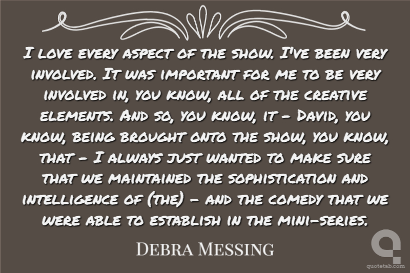 I love every aspect of the show. I've been very involved. It was important for me to be very involved in, you know, all of the creative elements. And so, you know, it - David, you know, being brought onto the show, you know, that - I always just wanted to make sure that we maintained the sophistication and intelligence of (the) - and the comedy that we were able to establish in the mini-series.