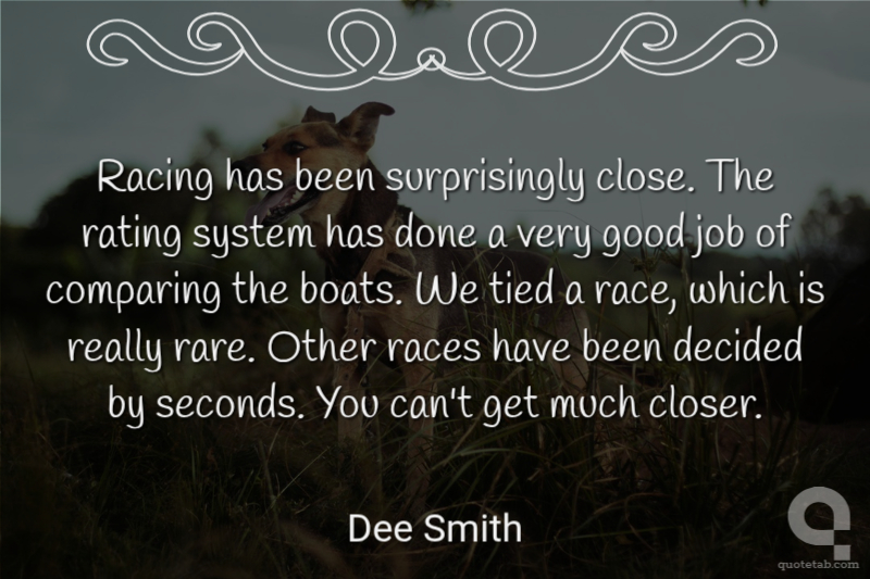 Racing has been surprisingly close. The rating system has done a very good job of comparing the boats. We tied a race, which is really rare. Other races have been decided by seconds. You can't get much closer.