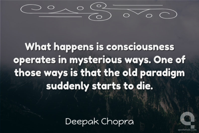 What happens is consciousness operates in mysterious ways. One of those ways is that the old paradigm suddenly starts to die.