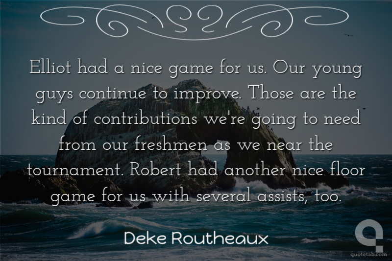 Elliot had a nice game for us. Our young guys continue to improve. Those are the kind of contributions we're going to need from our freshmen as we near the tournament. Robert had another nice floor game for us with several assists, too.