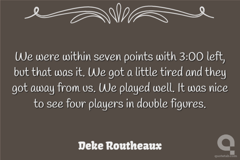 We were within seven points with 3:00 left, but that was it. We got a little tired and they got away from us. We played well. It was nice to see four players in double figures.