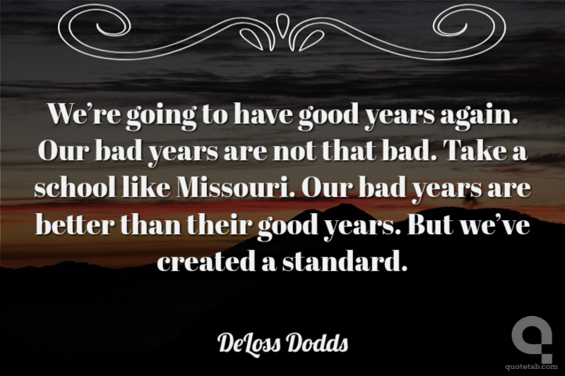 We’re going to have good years again. Our bad years are not that bad. Take a school like Missouri. Our bad years are better than their good years. But we’ve created a standard.