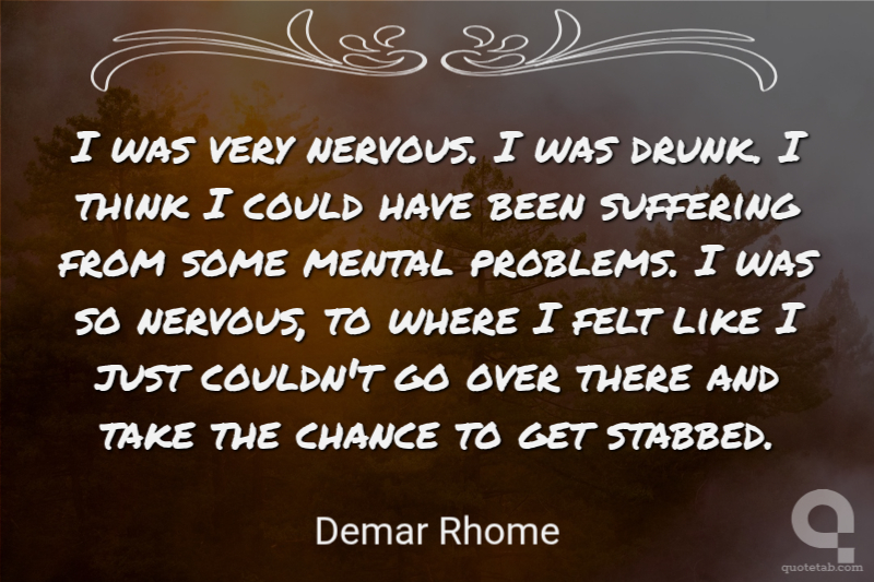 I was very nervous. I was drunk. I think I could have been suffering from some mental problems. I was so nervous, to where I felt like I just couldn't go over there and take the chance to get stabbed.