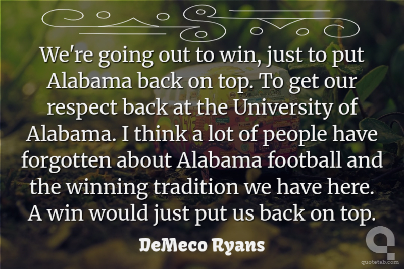 We're going out to win, just to put Alabama back on top. To get our respect back at the University of Alabama. I think a lot of people have forgotten about Alabama football and the winning tradition we have here. A win would just put us back on top.