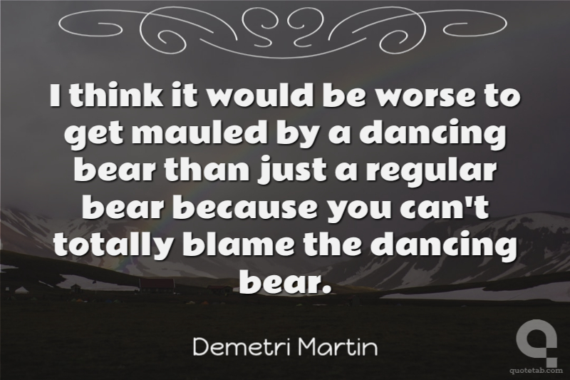 I think it would be worse to get mauled by a dancing bear than just a regular bear because you can't totally blame the dancing bear.