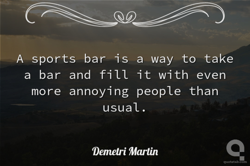A sports bar is a way to take a bar and fill it with even more annoying people than usual.