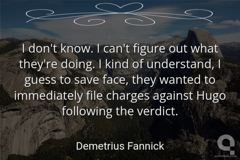 I don't know. I can't figure out what they're doing. I kind of understand, I guess to save face, they wanted to immediately file charges against Hugo following the verdict.