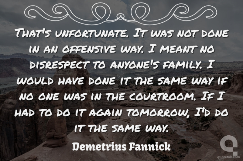 That's unfortunate. It was not done in an offensive way. I meant no disrespect to anyone's family. I would have done it the same way if no one was in the courtroom. If I had to do it again tomorrow, I'd do it the same way.