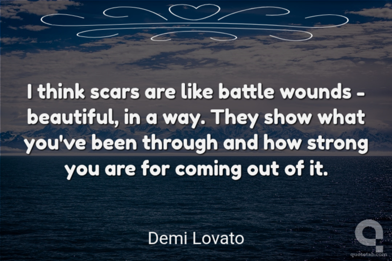 I think scars are like battle wounds - beautiful, in a way. They show what you've been through and how strong you are for coming out of it.