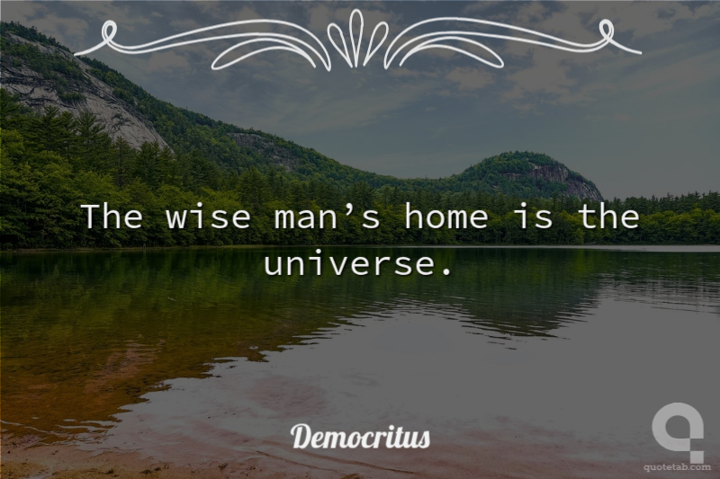 The whole Earth is at the hand of the wise man, since the fatherland of an elevated soul is the Universe.