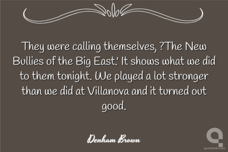 They were calling themselves, ?The New Bullies of the Big East.' It shows what we did to them tonight. We played a lot stronger than we did at Villanova and it turned out good.