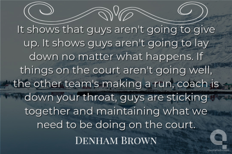 It shows that guys aren't going to give up. It shows guys aren't going to lay down no matter what happens. If things on the court aren't going well, the other team's making a run, coach is down your throat, guys are sticking together and maintaining what we need to be doing on the court.