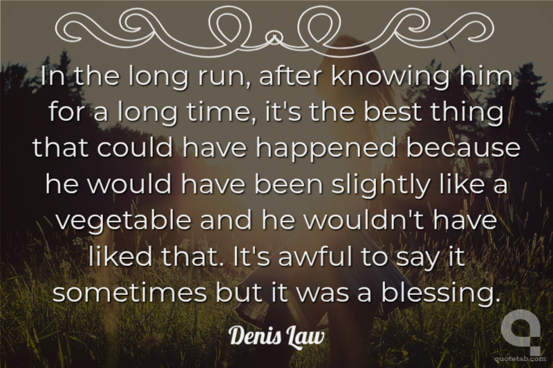 In the long run, after knowing him for a long time, it's the best thing that could have happened because he would have been slightly like a vegetable and he wouldn't have liked that. It's awful to say it sometimes but it was a blessing.