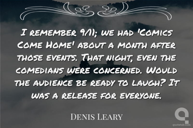 I remember 9/11; we had 'Comics Come Home' about a month after those events. That night, even the comedians were concerned. Would the audience be ready to laugh? It was a release for everyone.