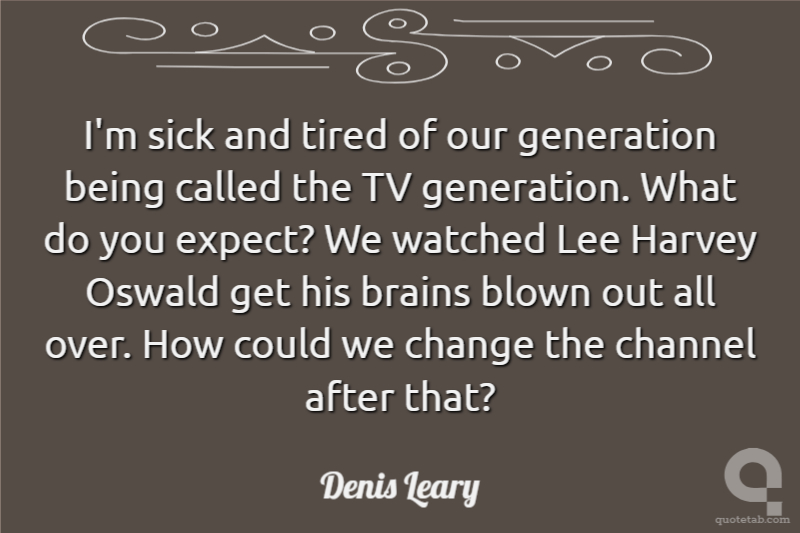 I'm sick and tired of our generation being called the TV generation. What do you expect? We watched Lee Harvey Oswald get his brains blown out all over. How could we change the channel after that?