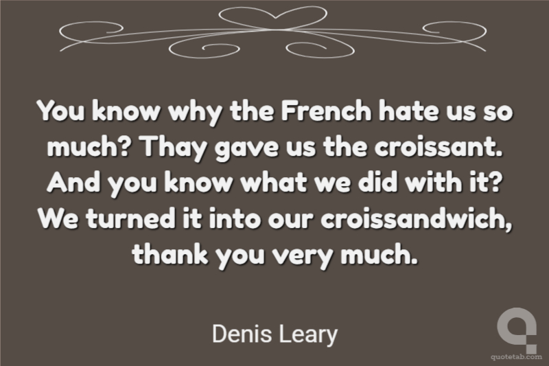 You know why the French hate us so much? Thay gave us the croissant. And you know what we did with it? We turned it into our croissandwich, thank you very much.