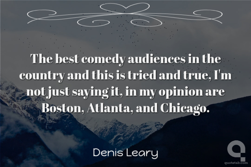 The best comedy audiences in the country and this is tried and true, I'm not just saying it, in my opinion are Boston, Atlanta, and Chicago.
