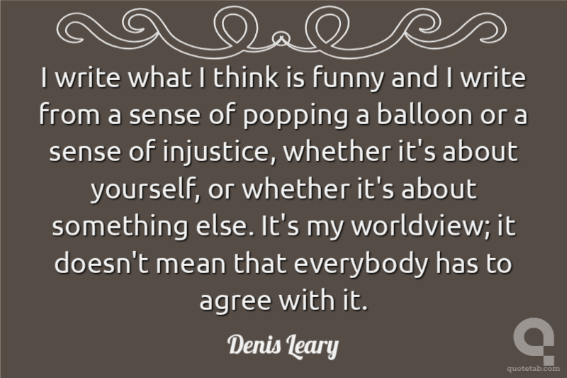 I write what I think is funny and I write from a sense of popping a balloon or a sense of injustice, whether it's about yourself, or whether it's about something else. It's my worldview; it doesn't mean that everybody has to agree with it.