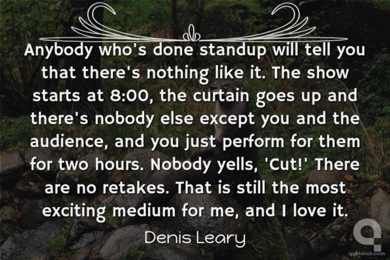 Anybody who's done standup will tell you that there's nothing like it. The show starts at 8:00, the curtain goes up and there's nobody else except you and the audience, and you just perform for them for two hours. Nobody yells, 'Cut!' There are no retakes. That is still the most exciting medium for me, and I love it.
