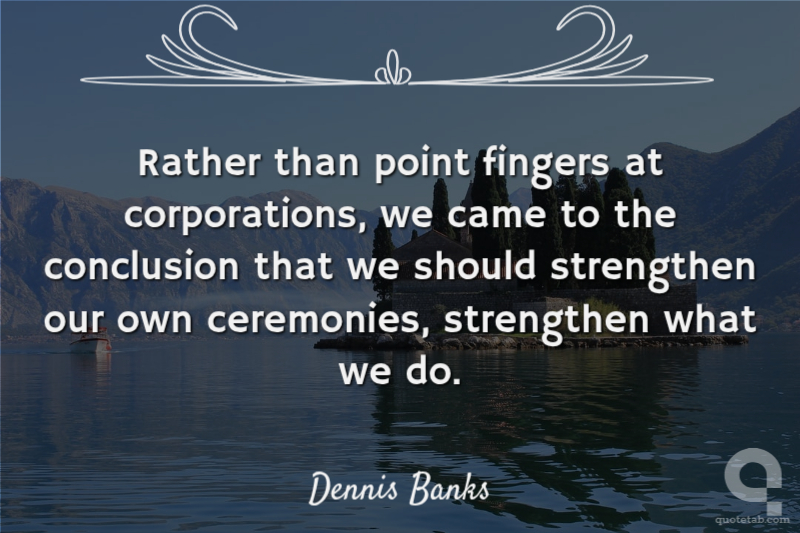 Rather than point fingers at corporations, we came to the conclusion that we should strengthen our own ceremonies, strengthen what we do.