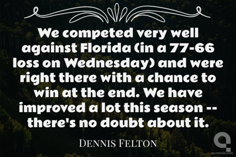 We competed very well against Florida (in a 77-66 loss on Wednesday) and were right there with a chance to win at the end. We have improved a lot this season -- there's no doubt about it.