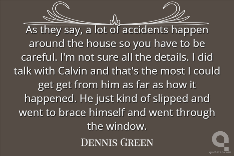 As they say, a lot of accidents happen around the house so you have to be careful. I'm not sure all the details. I did talk with Calvin and that's the most I could get get from him as far as how it happened. He just kind of slipped and went to brace himself and went through the window.