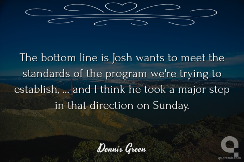The bottom line is Josh wants to meet the standards of the program we're trying to establish, ... and I think he took a major step in that direction on Sunday.