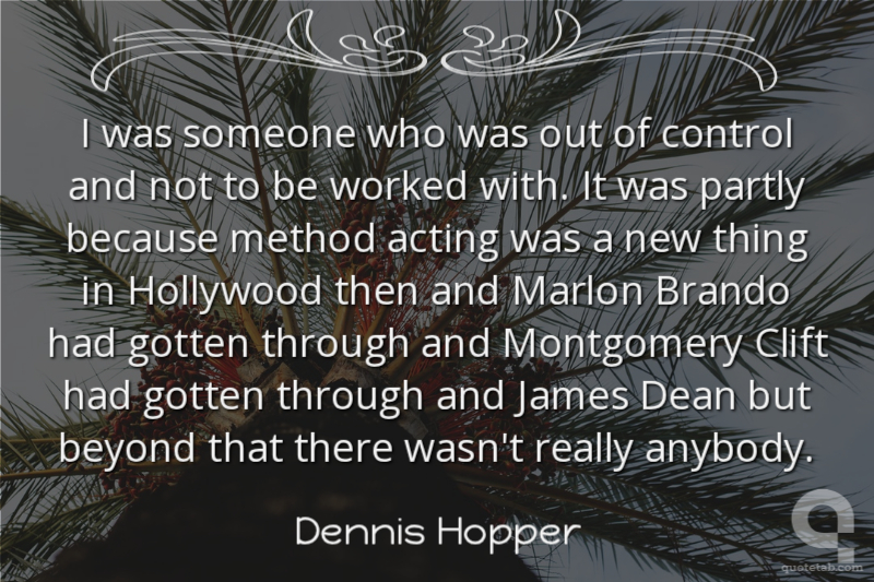 I was someone who was out of control and not to be worked with. It was partly because method acting was a new thing in Hollywood then and Marlon Brando had gotten through and Montgomery Clift had gotten through and James Dean but beyond that there wasn't really anybody.