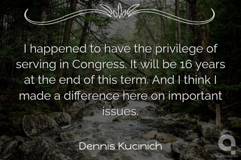 I happened to have the privilege of serving in Congress. It will be 16 years at the end of this term. And I think I made a difference here on important issues.