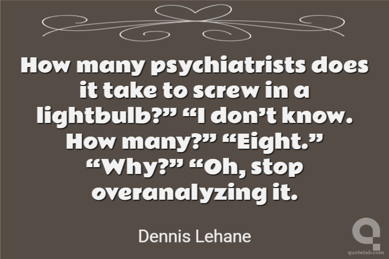 How many psychiatrists does it take to screw in a lightbulb?” “I don’t know. How many?” “Eight.” “Why?” “Oh, stop overanalyzing it.