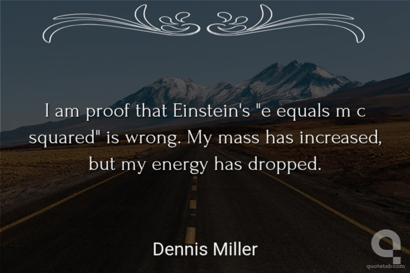 I am proof that Einstein's "e equals m c squared" is wrong. My mass has increased, but my energy has dropped.