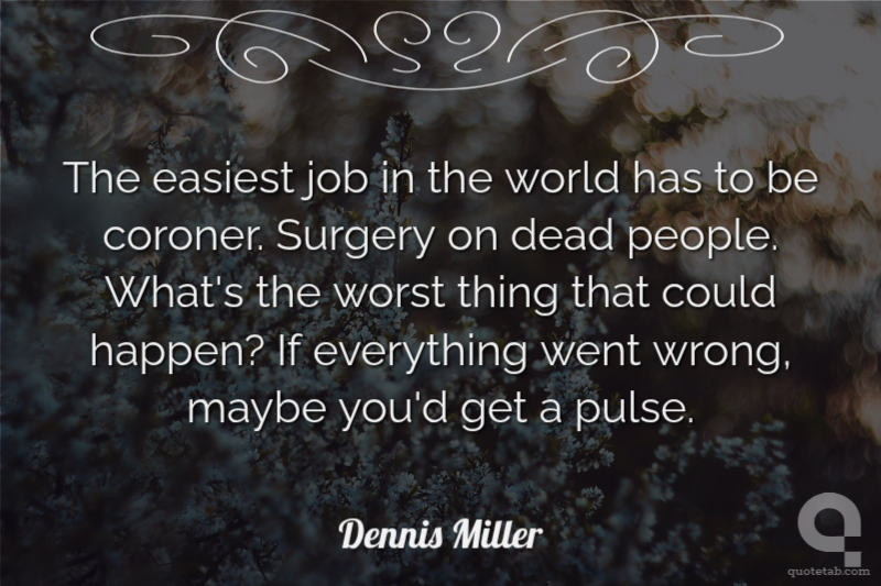 The easiest job in the world has to be coroner. Surgery on dead people. What's the worst thing that could happen? If everything went wrong, maybe you'd get a pulse.