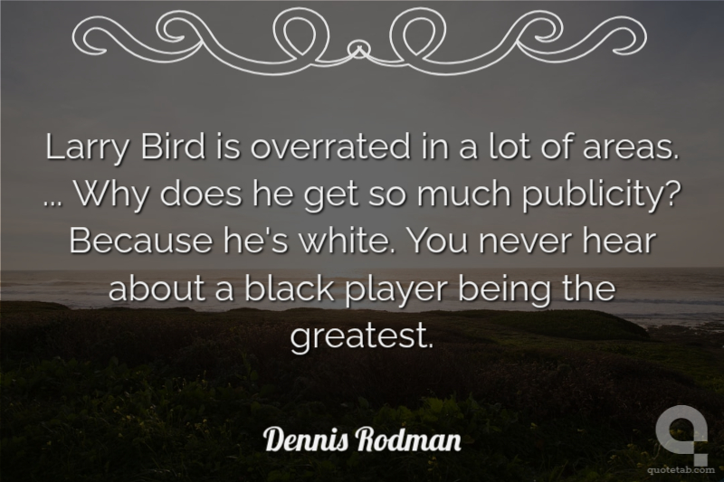 Larry Bird is overrated in a lot of areas. ... Why does he get so much publicity? Because he's white. You never hear about a black player being the greatest.