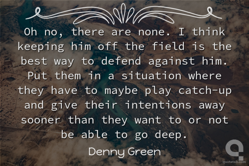 Oh no, there are none. I think keeping him off the field is the best way to defend against him. Put them in a situation where they have to maybe play catch-up and give their intentions away sooner than they want to or not be able to go deep.