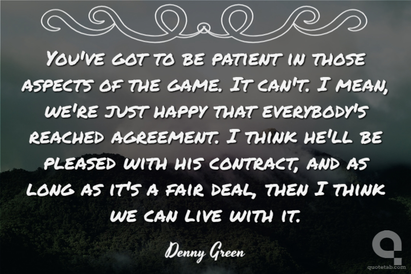 You've got to be patient in those aspects of the game. It can't. I mean, we're just happy that everybody's reached agreement. I think he'll be pleased with his contract, and as long as it's a fair deal, then I think we can live with it.