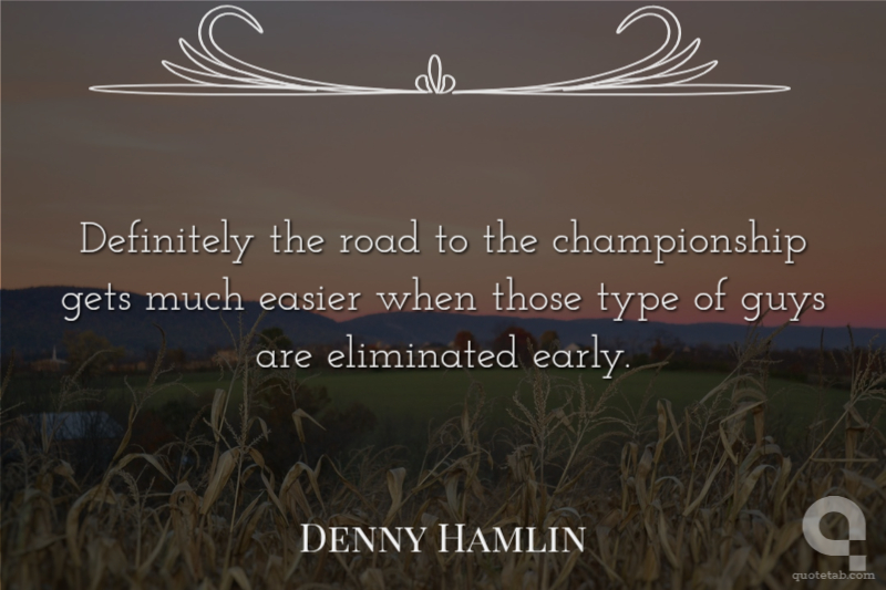 Definitely the road to the championship gets much easier when those type of guys are eliminated early.