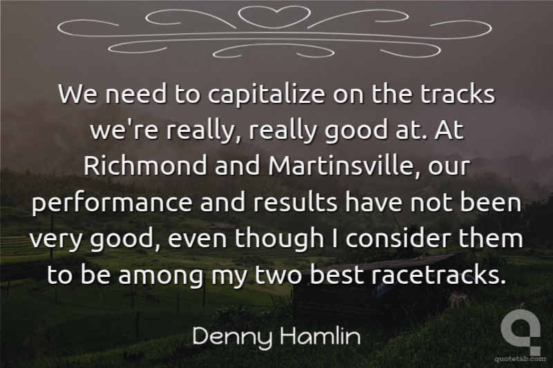 We need to capitalize on the tracks we're really, really good at. At Richmond and Martinsville, our performance and results have not been very good, even though I consider them to be among my two best racetracks.